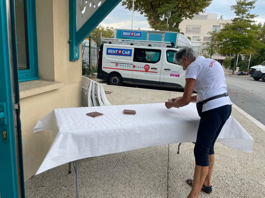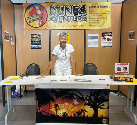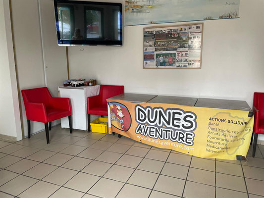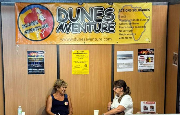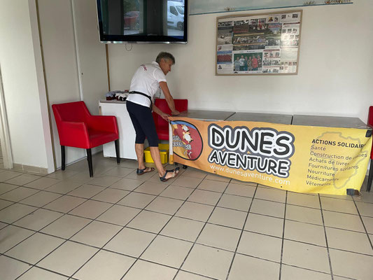 Et le matin, Agnès et Isa installe le stand dunesaventure , les affiches, la tirelire etc...