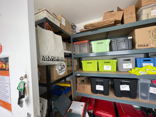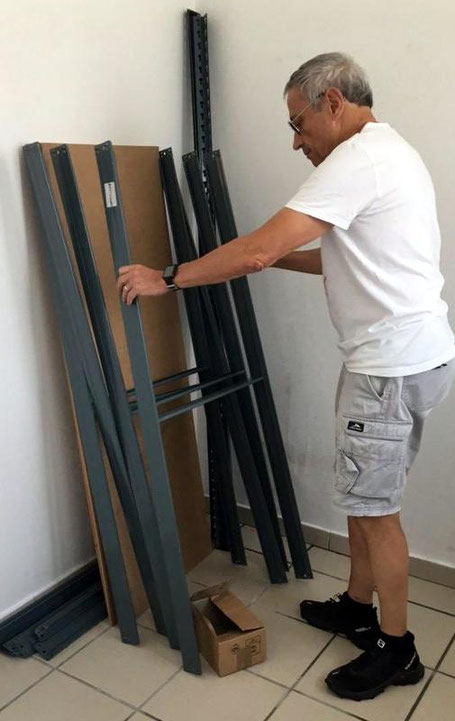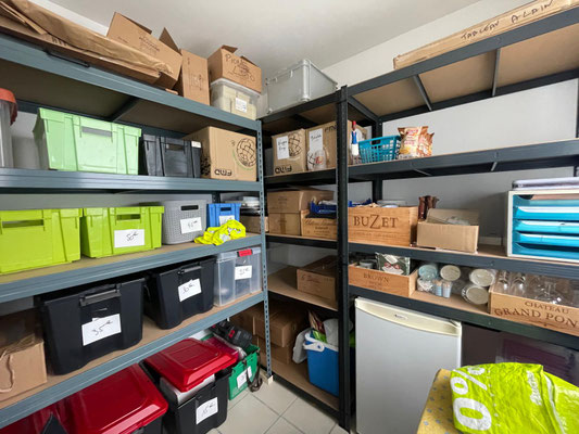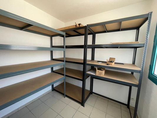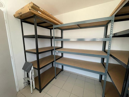 Installation des étagères dans notre réserve avec premier ménage, et aménagement de tout ce qui fait fonctionner l'association sur le plan matériel .