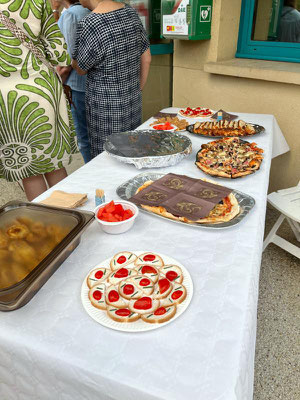 Place à l'apéro " le Cocktail Dunesaventure", offert par Agnès et René avec deux magnifiques buffets dressés avec tous les amuses queules amenés par les participants: une "belle auberge à l'espagnole ! "