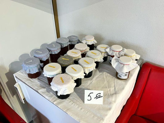 Avec sur place, la vente de nos pots de confiture faits par Cathy, François, Josiane et Monique et les affiches , flyers et bons pour le loto et les bulletins d'inscription pour le repas africain et la sortie à la ferme du Guit.