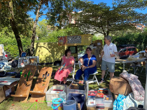 Dimanche 24 Aout, Place des Palmiers, l'association Dunesaventure participera au vide grenier organisé par l'Association du Kiosque de la Ville d'Hiver . Nous ferons un grand déballage pour éliminer au maximum du volume. Venez nombreux nous voir !!! et le soir nous aider à bien remballer tout ce que nous garderons dans des cartons bien faits pour attendre ceux de l'année 2026!!