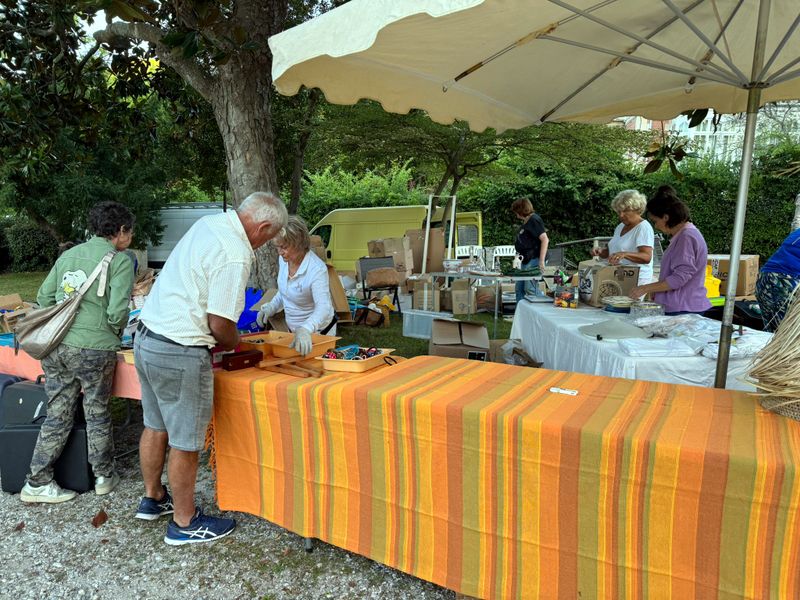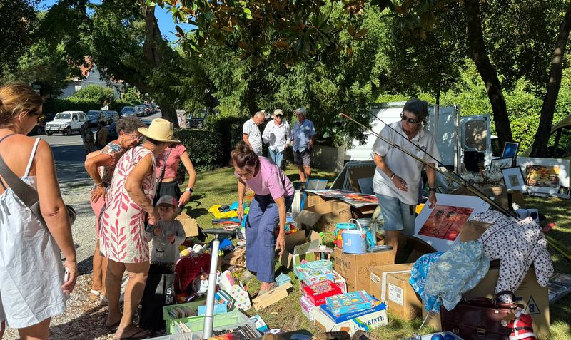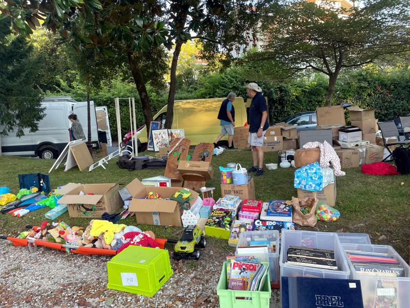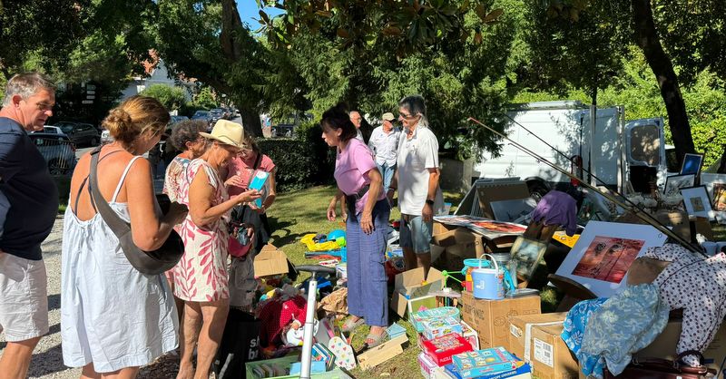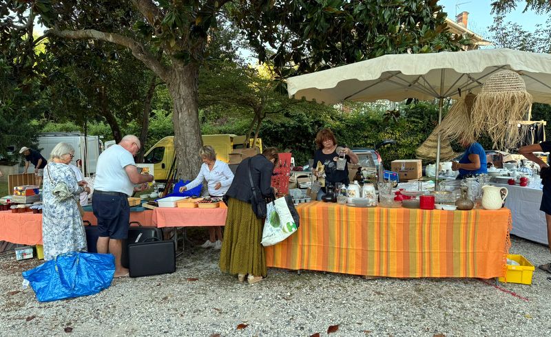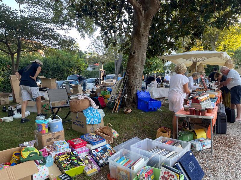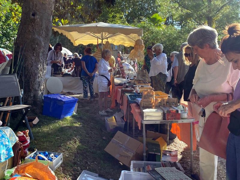 Une très belle journée très ensoleillée que ce dimanche 24 pour ce dernier vide grenier de l'année. Heureusement à l'ombre du magnolia, les 11 bénévoles, Agnès, Annie, Brigitte, Cathy, Claudie, Hélène, Isa, Kiki, Michel, Mimi, René étaient présents pour vendre au mieux tout !!! mais surtout ne repartir qu'avec un camion plein ! un monde fou le matin et le travail des bénévoles a réussi à réaliser l'objectif.