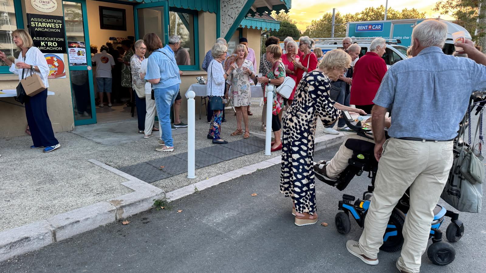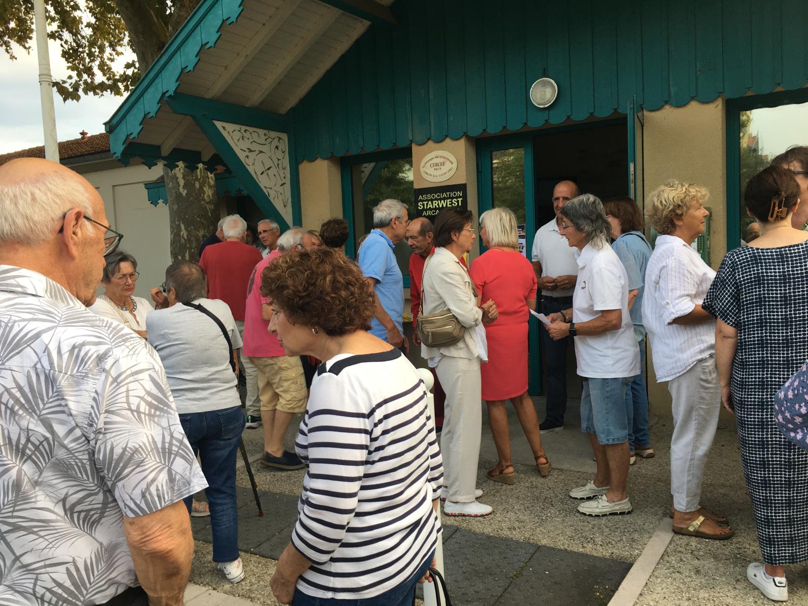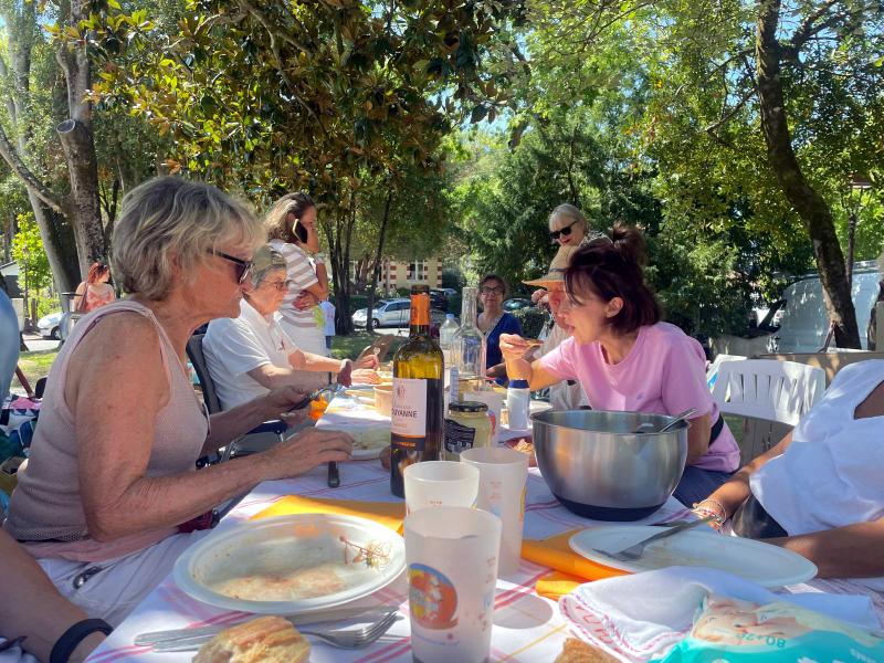 Et prenant avec eux leurs chaises, nos 80 convives ont cherché leur place . Une fois tout ce petit monde installé, pour avoir droit à l'apéro, ils ont du résoudre une petite enigme avant d'attaquer un super repas marocain cuisiné par Khakid que vous pouvez retrouver 4 fois par semaine sur le marché d'Arcachon