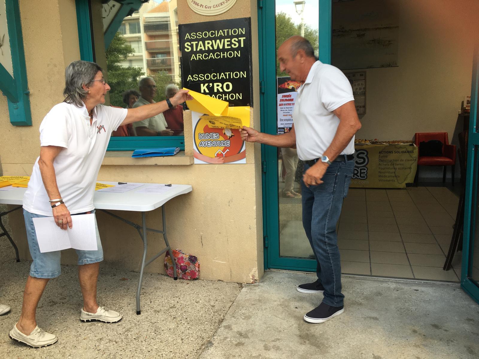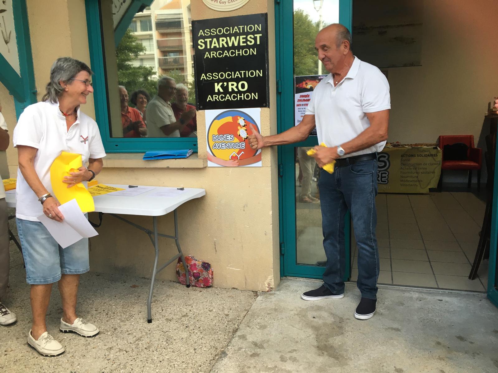 Soulignons qu'une fois de plus, l'association des Riverains de la Place Claude Bouscau, reversa la moitié de la recette des emplacements à notre association . Et à la fin de la journée, un chèque de 200€ nous est remis par le président Jean Claude Adraste