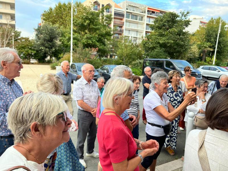 Yves donc, représentant la Mairie, nous fait un gentil petit discours pour la circonstance et la Présidente un grand, papier à la main pour ne rien oublier